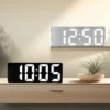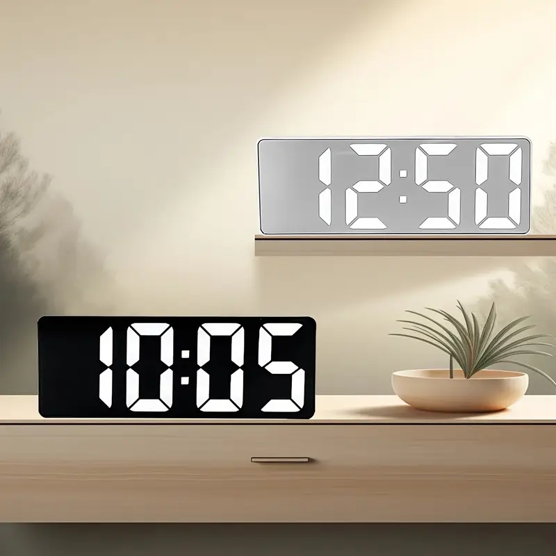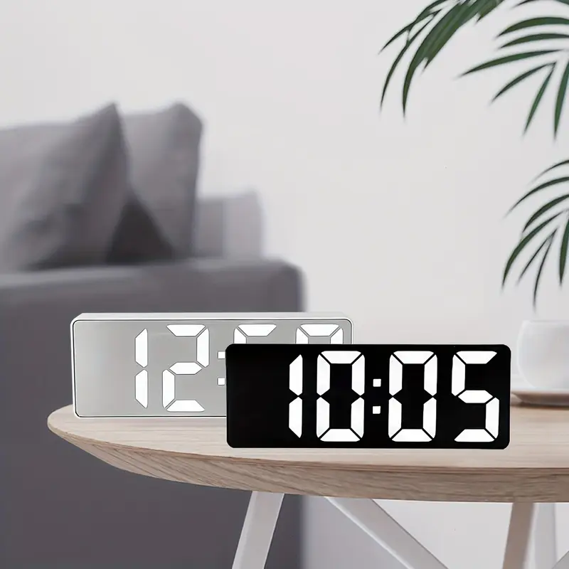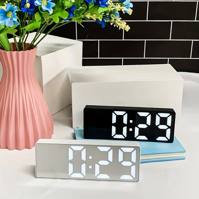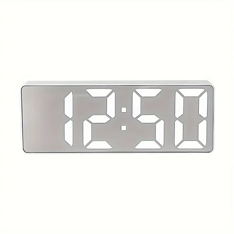 Reloj de espejo silencioso luminoso LED, inteligente, electrónico, despertador, de escritorio, de dormitorio, para oficina, estudio, especial, doble, con configuración independiente, pantalla grande, digital, con función de pausa de un solo clic, para decoración del hogar. No incluye pilas. 10 ocasiones de uso.