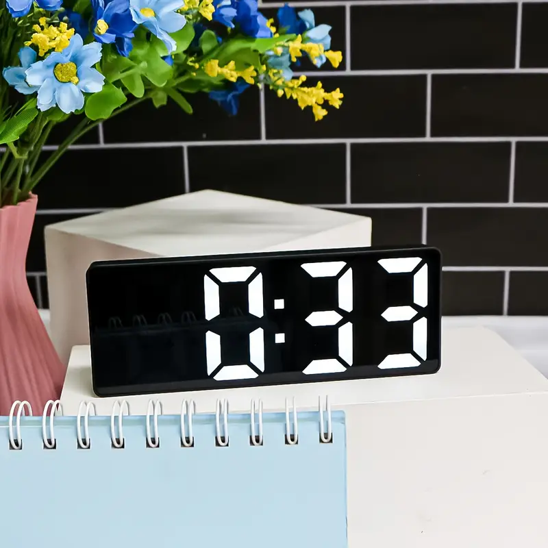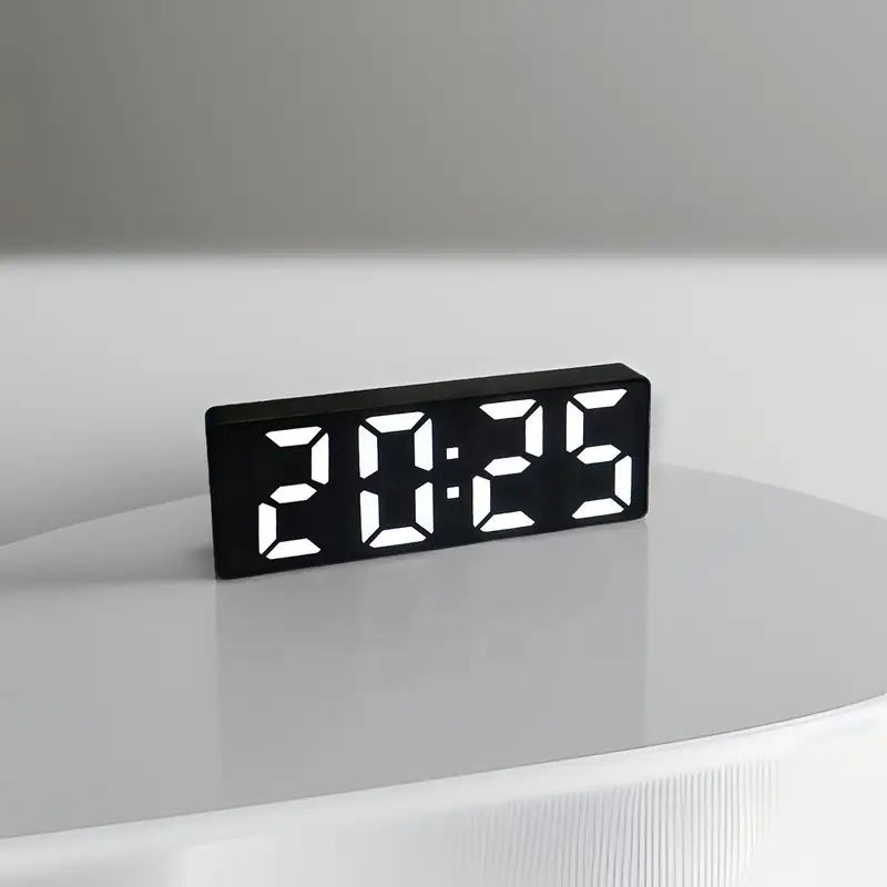 1pc Reloj Alámbrico LED Simple, Forma Rectangular, Material Plástico, Alimentado por USB, Voltaje de Operación ≤36V, Luminoso, con Timer de Sueño, Control de Voz, Displey de Temperatura, para Estudiante, Color Negro.